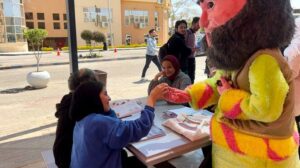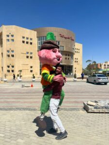 An exciting atmosphere for the students, and characters that are related to the holy month, taking some photos and distributing souvenirs on campus