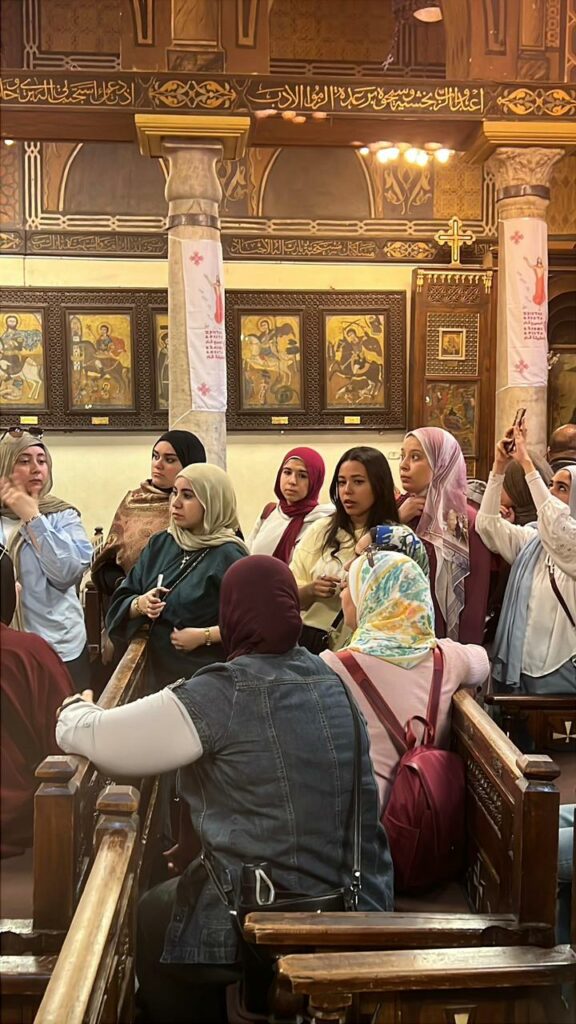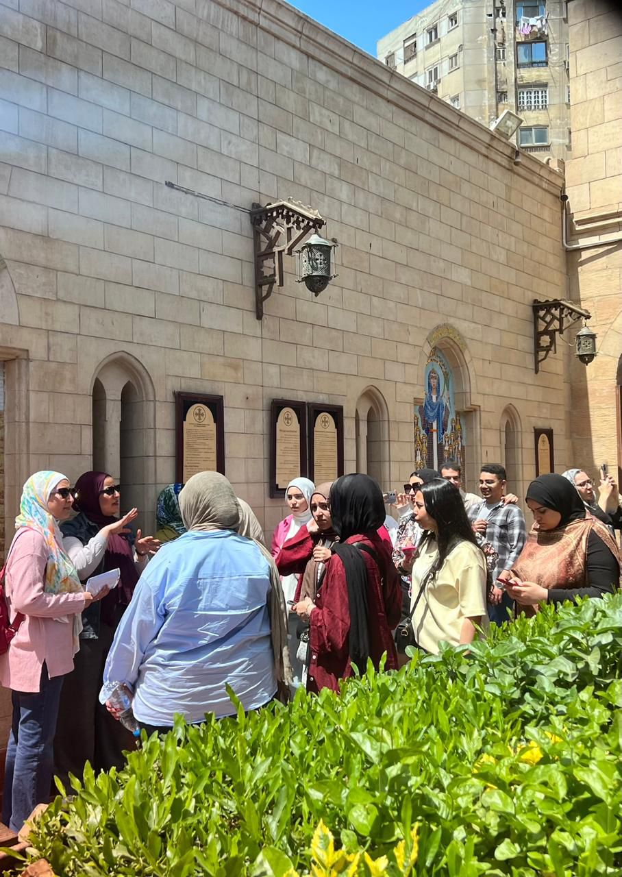 طلاب الهندسة المعمارية بالجامعة المصرية الروسية في جولة ميدانية لـ "مجمع الأديان" بالقاهرة