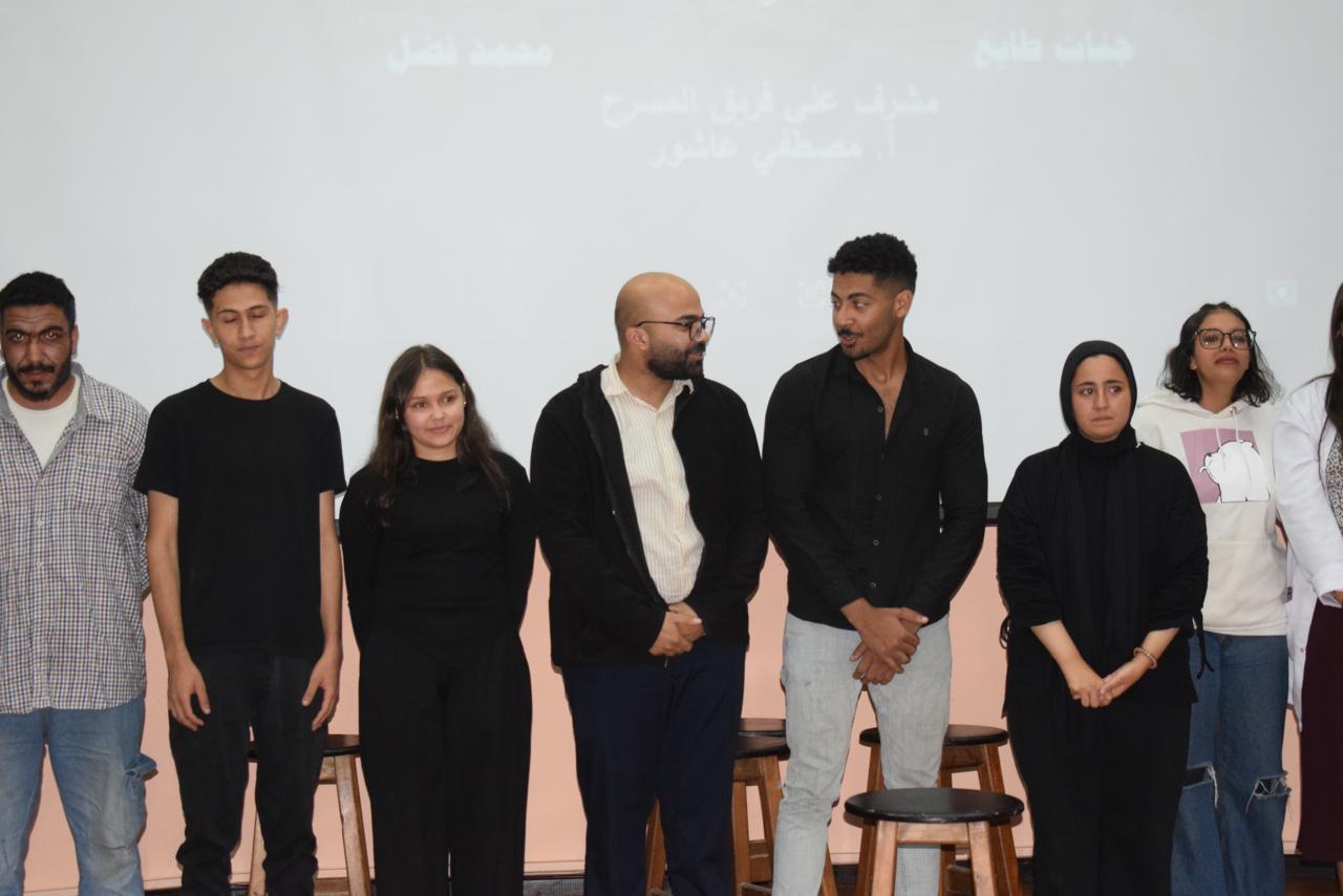 وافر الشكر للطلاب المشتركين في العرض المسرحى: محمد شوقي، ريم محمود، محمد رضا، شهد أشرف، ملك فاروق، أحمد أسامة، مريم عاطف، فيرجينيا يسري، أحمد عبدالكريم، عمرو مصطفى، و نورهان محمد - موسيقى العرض، وجنات طايع - مساعد مخرج... بقيادة مخرج العرض الطالب الموهوب كريم رضا - الطالب بكلية الهندسة، الذى أخرج العرض المسرحى وقام بدور محورى في المسرحية. كما قام بالإشراف على الفريق أ. مصطفى عاشور من ادارة رعاية الشباب.
