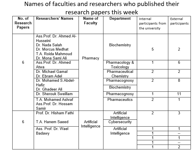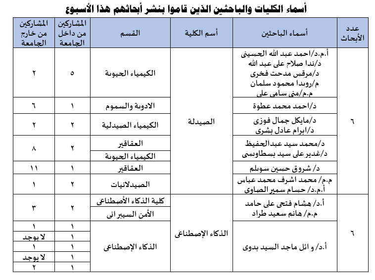 بيان النشر العلمي الأسبوعي للجامعة المصرية الروسية رقم 173