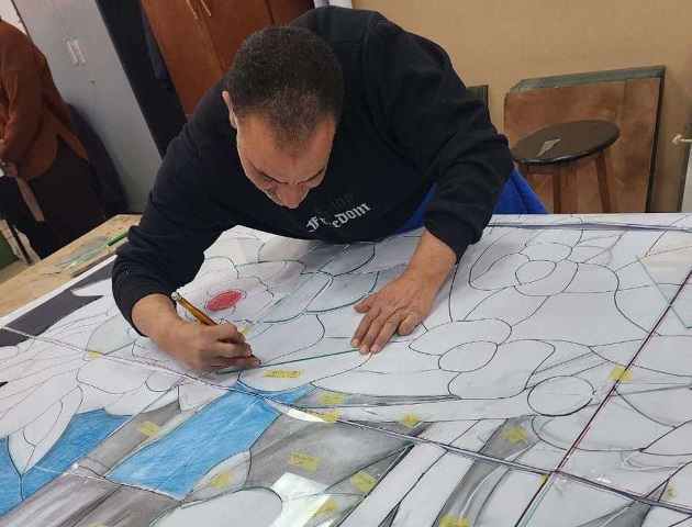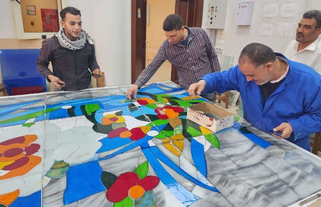 The Dean added that the artworks were designed and executed using stained glass and lead-based artwork (“Art Painting of Stained Glass”). He revealed that the design, execution, and installation of the project were carried out under the full supervision of the Faculty of Applied Arts at the university, and that a number of faculty members, teaching assistants, and technicians from the glass department, in addition to other college workers, participated in the execution