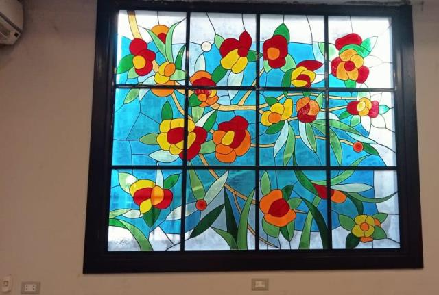 Dr. Sherif Fakhry Mohamed Abdel-Nabi, President of the Egyptian-Russian University, announced that the Consulting Center for Product Design and Production Development in the fields of applied arts at the university has completed the project to design, execute, and install specialized artworks made of stained, painted, and lead-drawn glass, titled “Art Painting of Stained Glass.” He noted that the project was installed in four openings in the reception hall of the Applied Arts Designers Syndicate building, under the patronage of Dr. Mohamed Kamal Mustafa, Chairman of the University’s Board of Trustees.