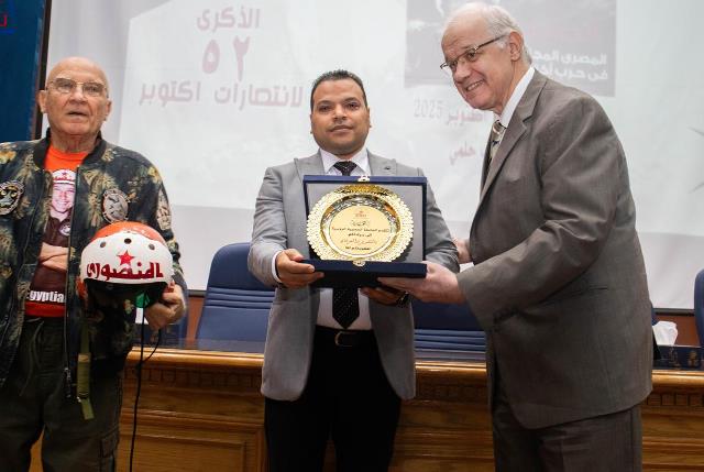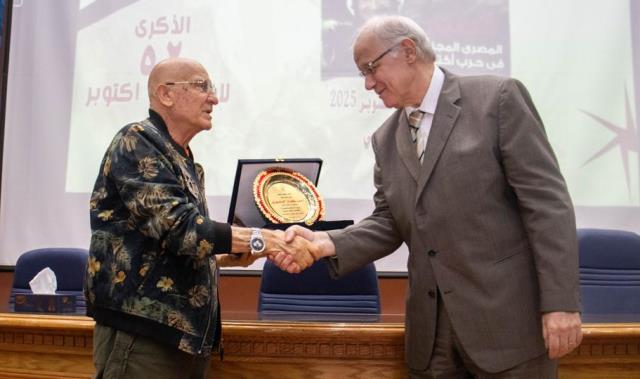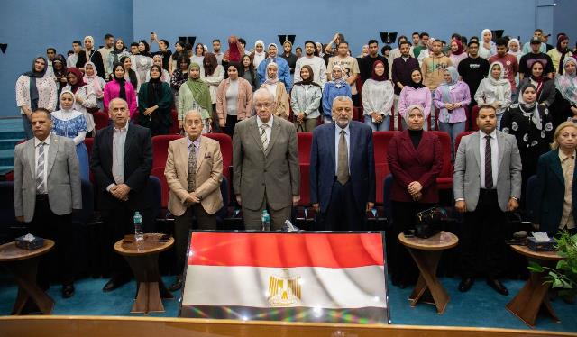On the same topic, Dr. Hanaa Abd-el-Rahman, Advisor to the University President for Student Activities, stated that the celebration of the October Victories is an occasion to renew the spirit of determination and victory embodied in the 1973 War, and that this year’s celebration was graced by hosting Major General Pilot/ Ahmed Al-Mansoury from the Air Force. He is one of the heroes of the October War and left a clear mark on the war, with his heroic stories… directing a message to the students that the youth of Egypt in the October War were the ones who crossed the canal and liberated the land, and that the youth today have the same role in protecting their country and raising its status.