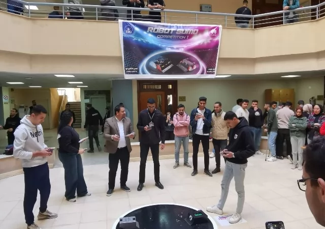 In the same context, Dr. Alaa Mohamed Al-Batsh, Dean of the Faculty of Engineering at the ERU, pointed out that the Robot Sumo competition provides students with the opportunity to apply what they study practically in a real competitive environment. He highlighted that the faculty helps in qualifying students with technical knowledge and skills , and developing their capacities in the areas of robotics, intelligent systems, and teamwork, since these are the language of the age in various fields: industrial, educational, agricultural, as well as other diverse and various fields.