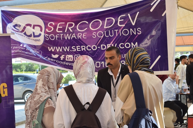 The ERU President asserted that the job fair stems from the university’s endeavor to create a strong link between academic study and the labor market, and that the university spares no effort in providing students with the opportunity to learn about the requirements of the modern labor market and the skills that must be developed for achieving professional success. The forum is also considered a distinguished platform for showing the students’ skills and talents, as it allows them to submit their resumes and introduce their projects and achievements to company representatives, as well as providing training and work opportunities for final-year students to advance them, so as to become equipped with academic knowledge and practical experiences which suit the requirements and challenges of the labor market. This gives them a competitive advantage that puts them at the forefront of graduates, giving them greater opportunities in the labor market.