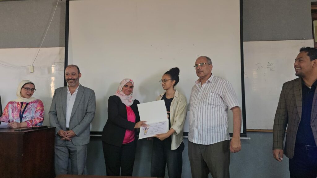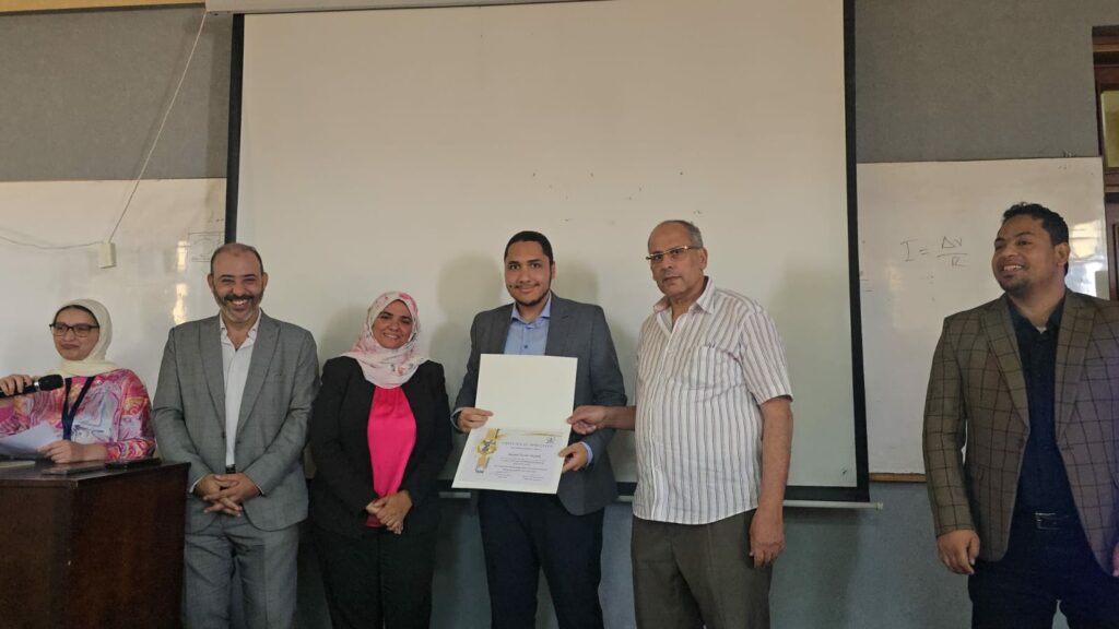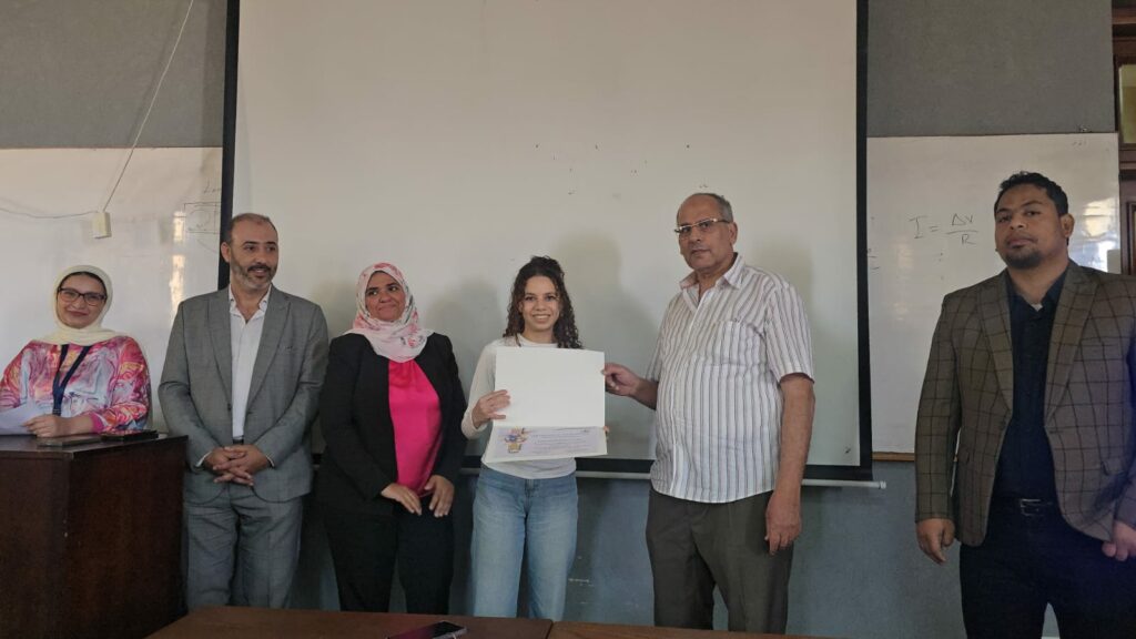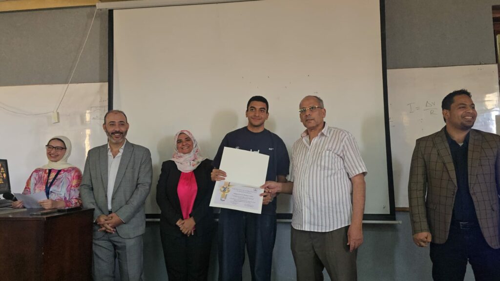 The day also included a special presentation about Amazon Web Services (AWS) Academy, under the supervision of Assistant Professor / Dr. Shaymaa Mustafa and Dr. Ahmed Hamdy. The presentation was given by the students Mohamed Yasser and Mazen Mahmoud, who reviewed the academy’s goals and educational paths in the fields of cloud computing, cyber security, and modern technologies, highlighting the significance of these areas in shaping the future of technology and digital transformation.
