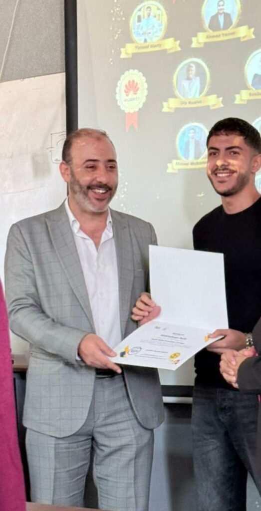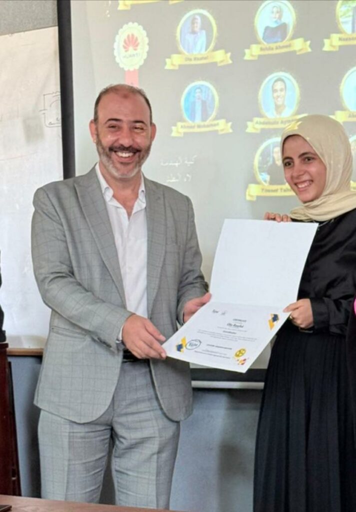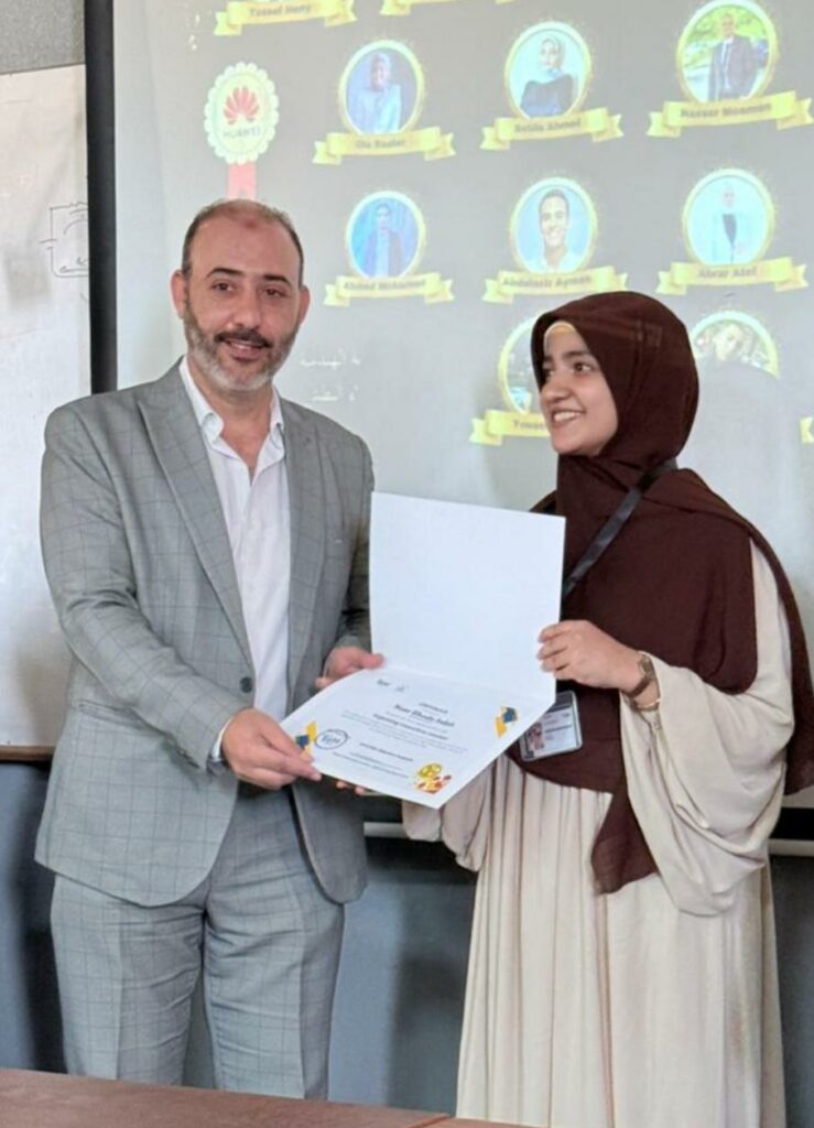 Huawei Academy’s activities were also reviewed under the supervision of Dr. Tamer Saleh, Academy’s Executive Director. The student Seif Al-Deen Wael gave a comprehensive presentation on the Academy’s training programs and global competitions, highlighting its role in qualifying students to obtain professional certifications in the field of networks and communications. This has helped many university students achieve advanced positions locally and internationally.