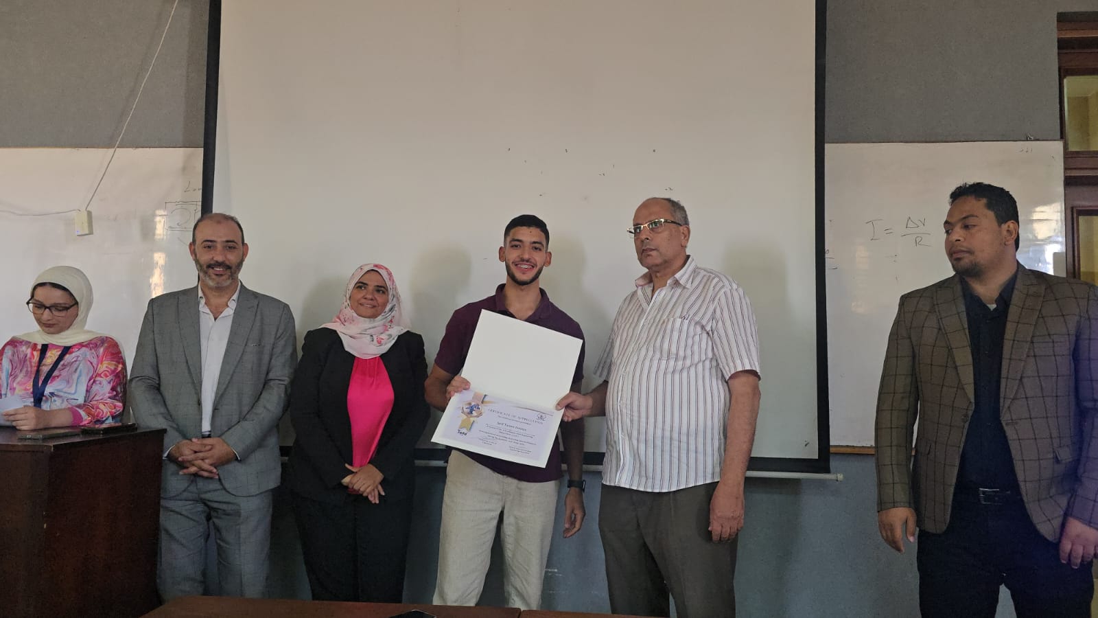 The day also included a special presentation about Amazon Web Services (AWS) Academy, under the supervision of Assistant Professor / Dr. Shaymaa Mustafa and Dr. Ahmed Hamdy. The presentation was given by the students Mohamed Yasser and Mazen Mahmoud, who reviewed the academy’s goals and educational paths in the fields of cloud computing, cyber security, and modern technologies, highlighting the significance of these areas in shaping the future of technology and digital transformation.