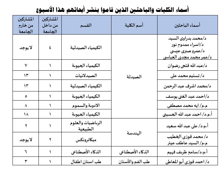 Weekly Report of Scientific Publishing by the Egyptian Russian University - No. 168