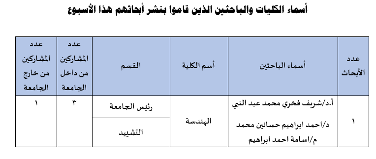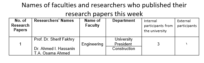 Weekly Report of Scientific Publishing by the Egyptian Russian University - No. 174