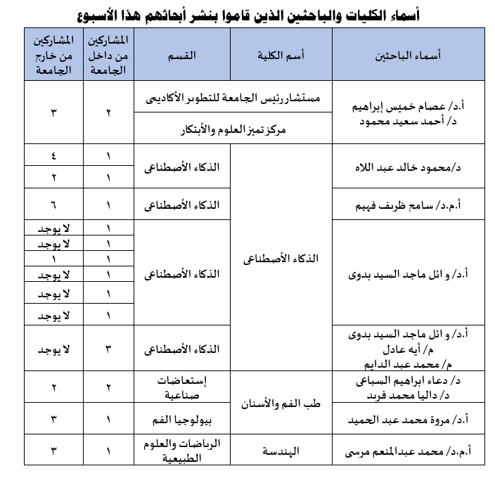 Weekly Report of Scientific Publishing by the Egyptian Russian University - No. 176