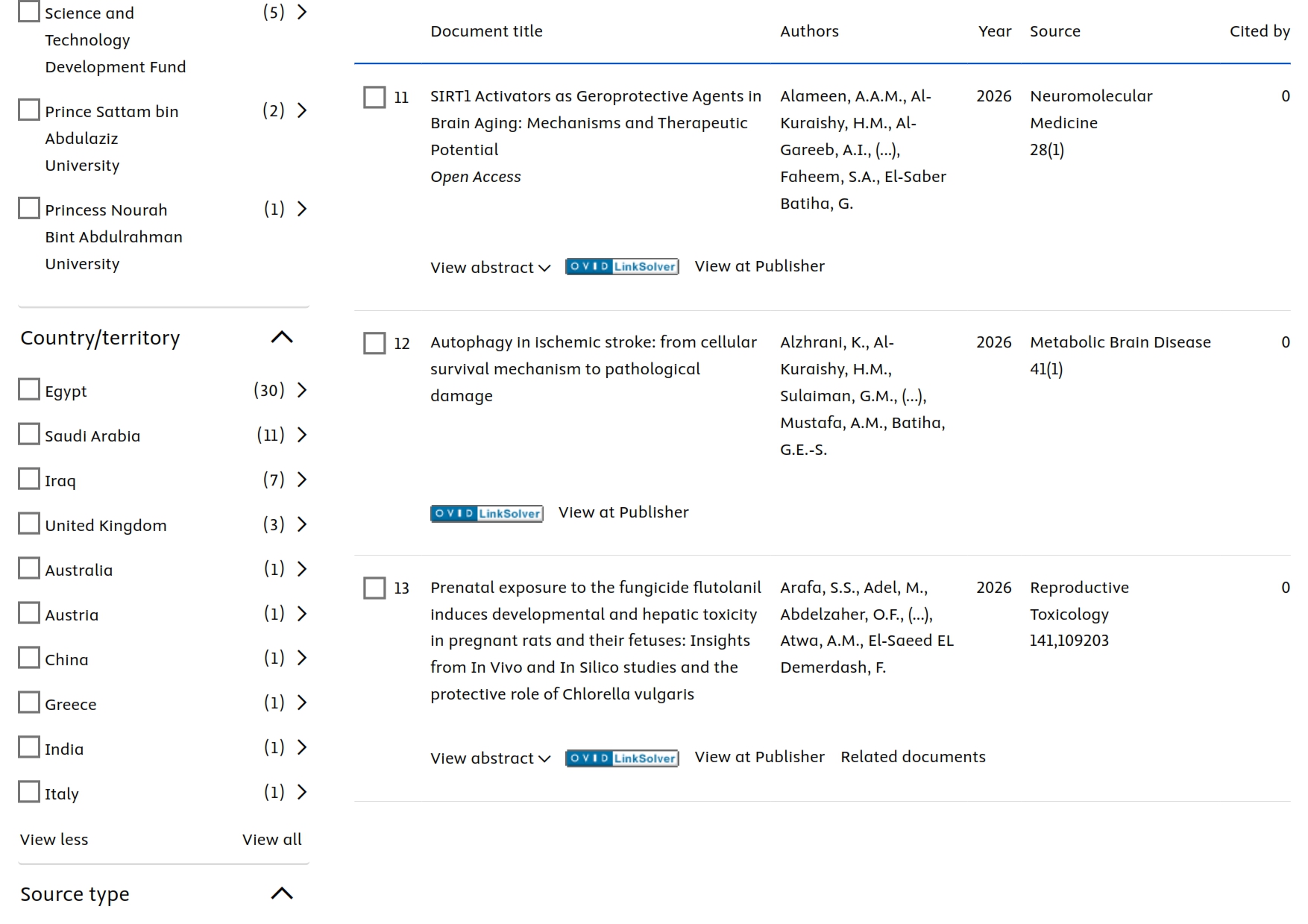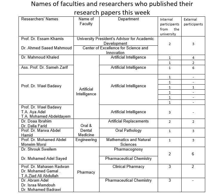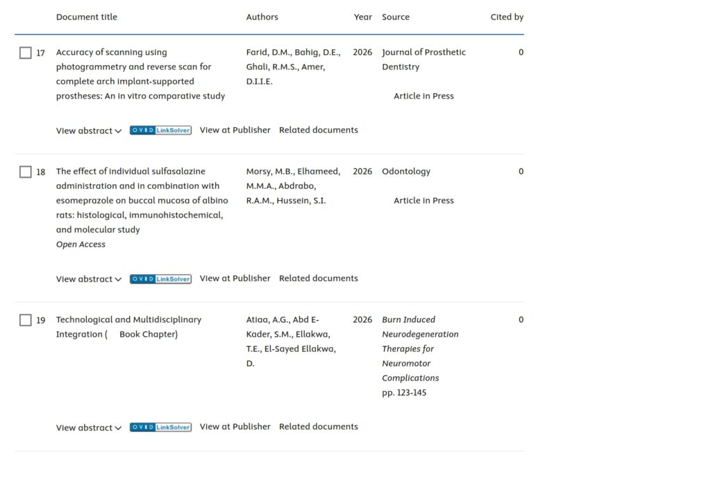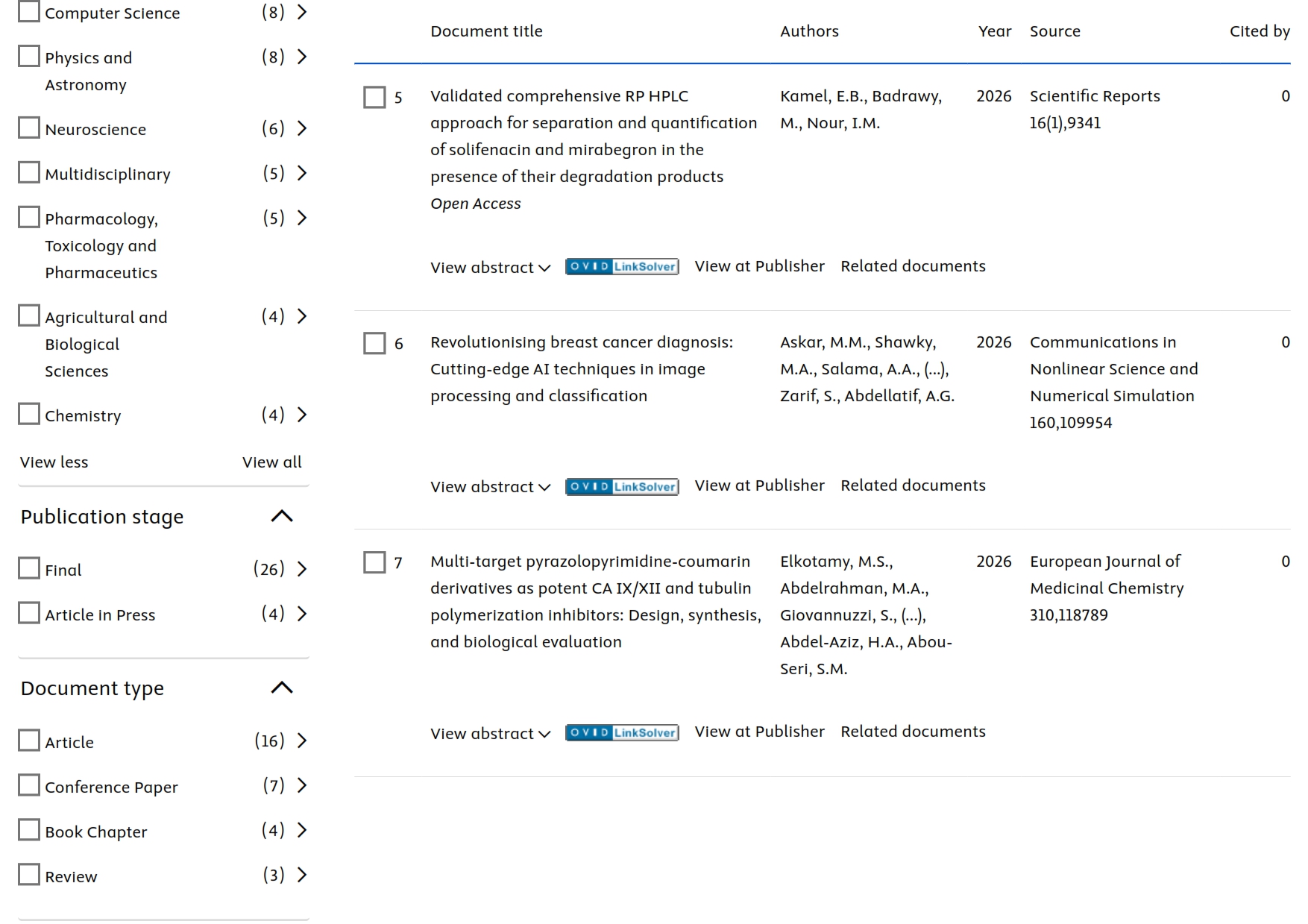The Egyptian Russian University (ERU) has published this week (30) research papers in globally indexed journals on Scopus Platform on April 19, 2026. So, the total scientific publication by the ERU has amounted to 1,683 papers, of which 105 papers was published in 2026, 393 papers was published in 2025 and 275 in 2024 and 249 in 2023.