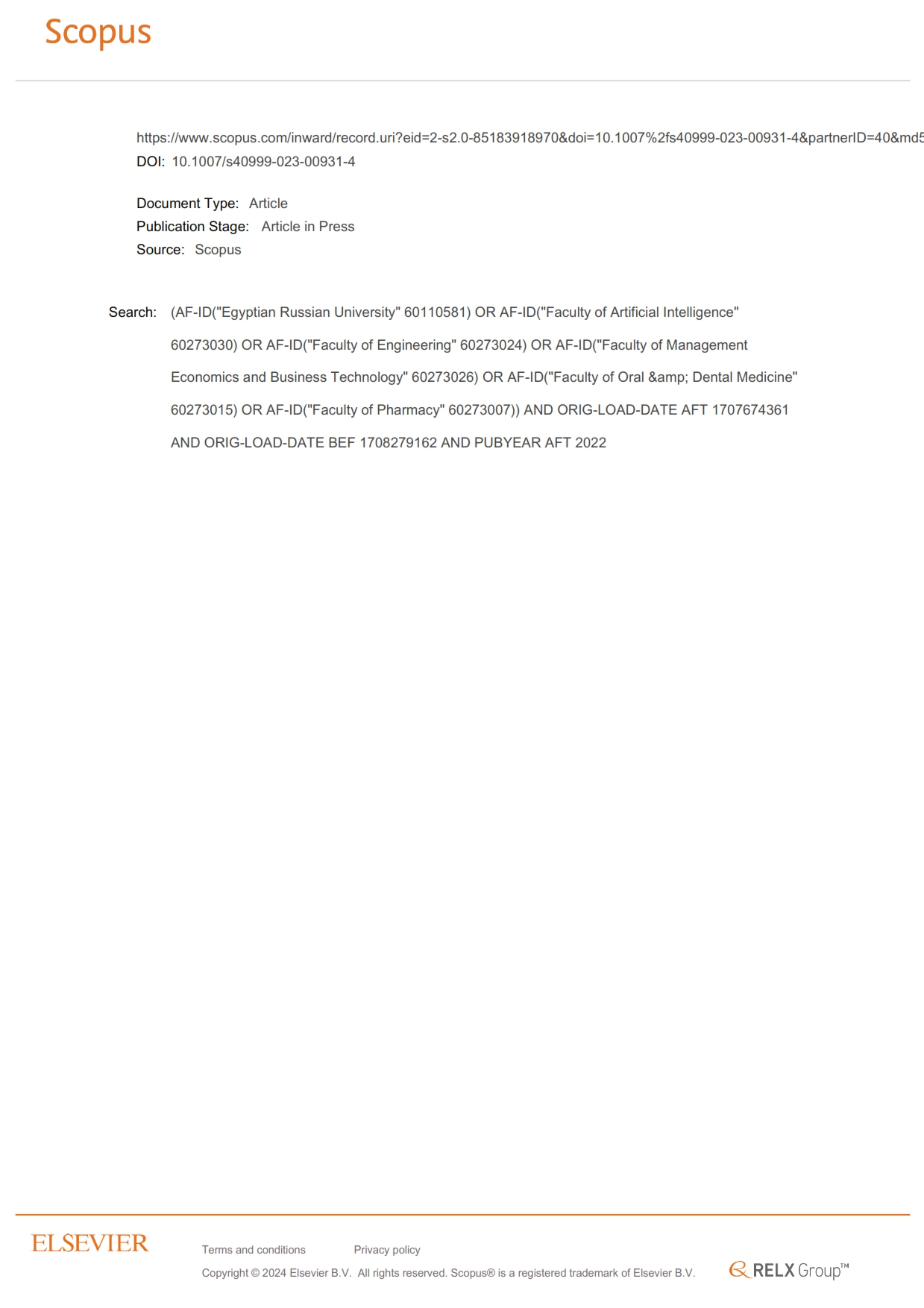 The Egyptian Russian University published 4 research papers in in one of the journals indexed globally on the Scopus platform this week on February 18, 2024. Thus, the total scientific publication for the Egyptian Russian University has reached 944 papers, including 38 papers in 2024, and 245 papers published in 2023.
