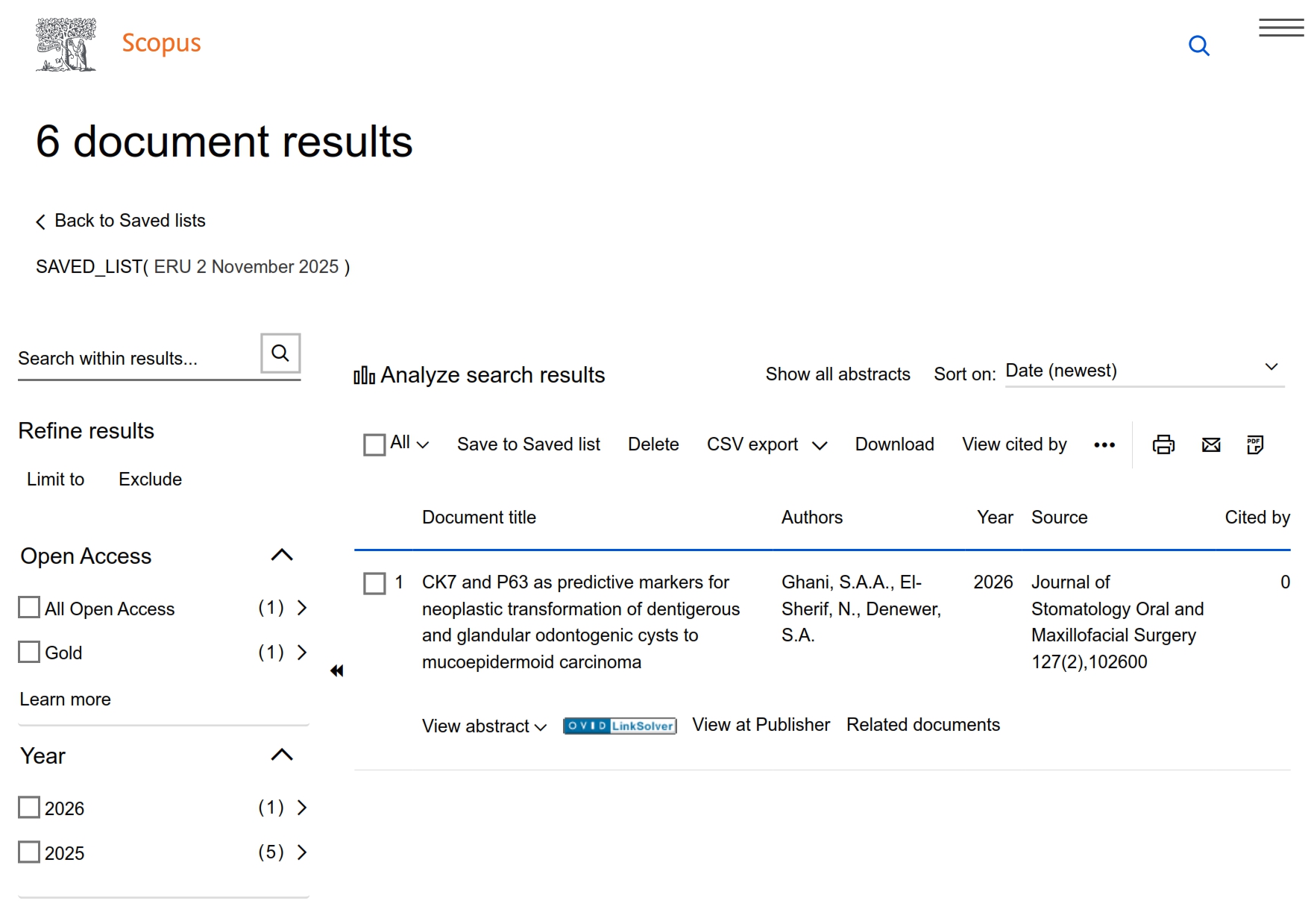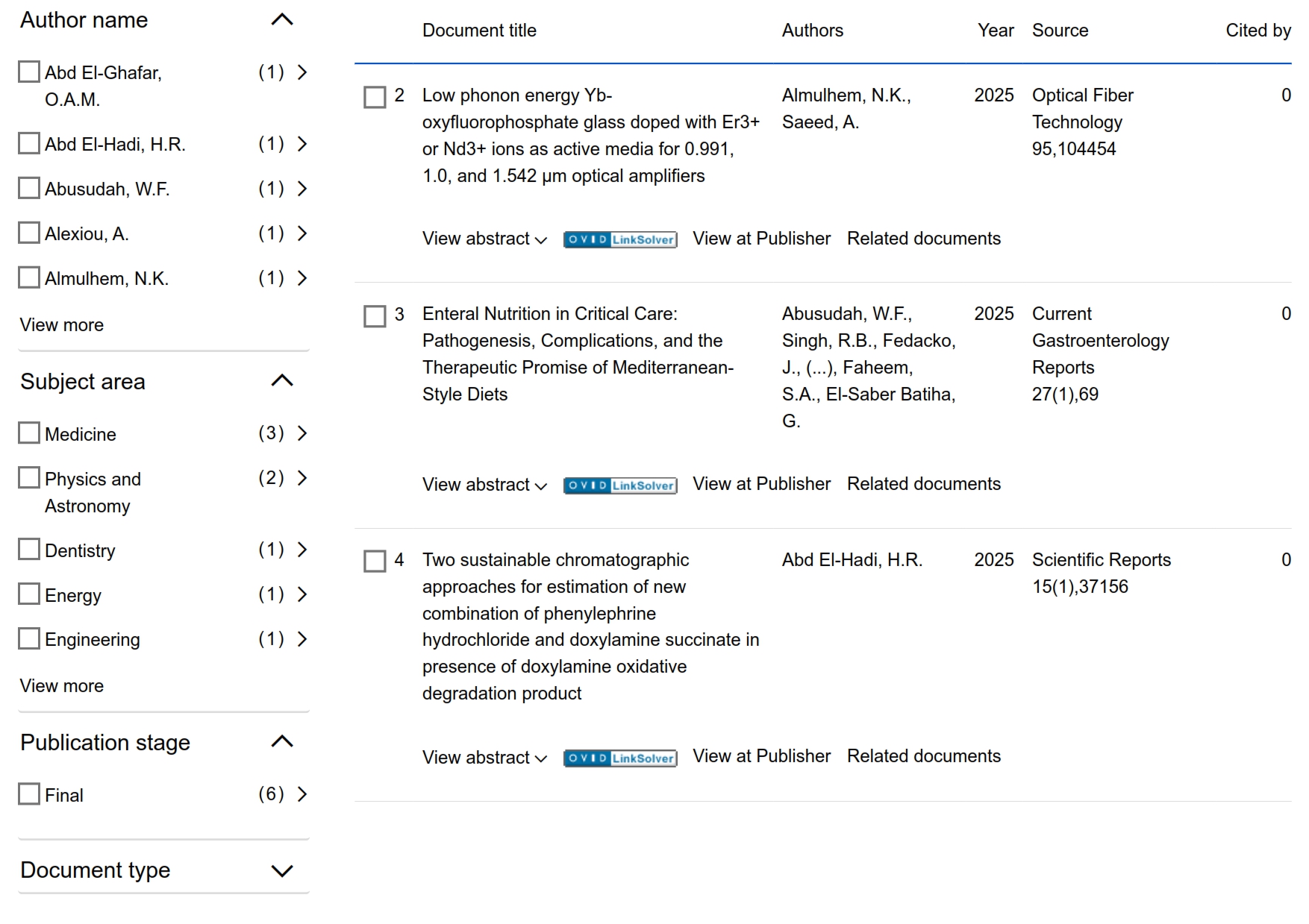 The Egyptian Russian University published sixteen (6) research papers in internationally indexed journals on the Scopus platform this week, dated November 2, 2025. Accordingly, the total number of publications of the Egyptian Russian University has reached 1,517 papers, including 327 papers in 2025 and 277 papers in 2024.