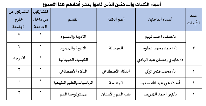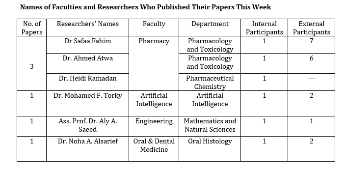 Weekly Scientific Publication Report of the Egyptian Russian University – No. 155