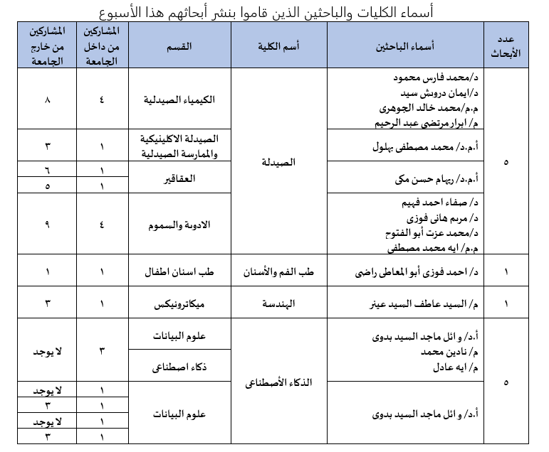Weekly Scientific Publication Report of the Egyptian Russian University – No. 163