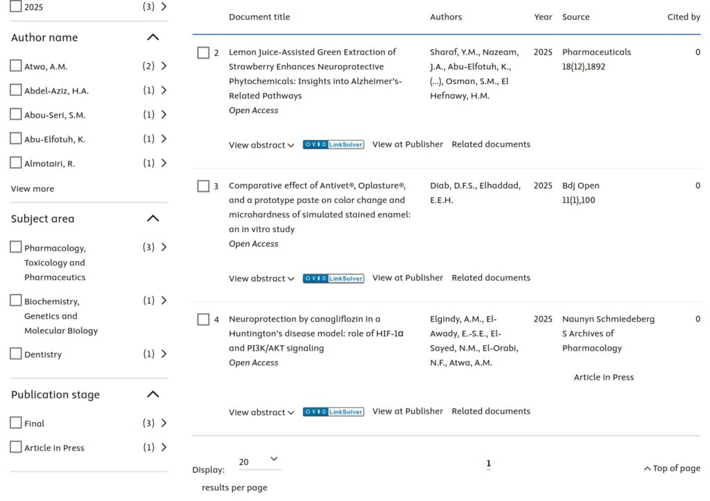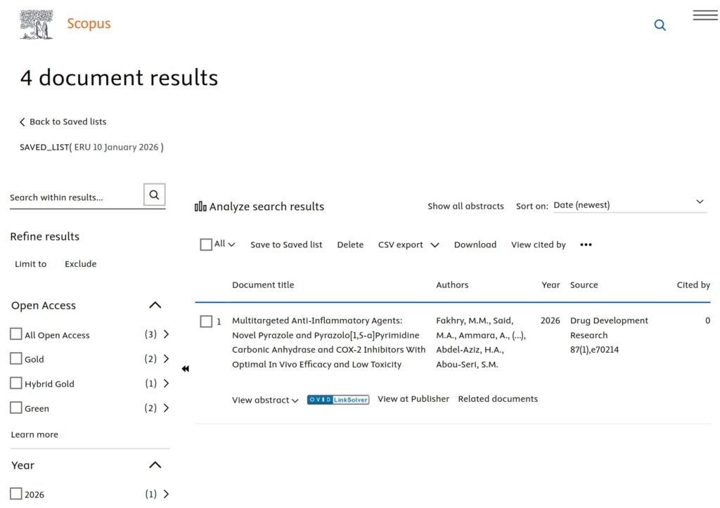 The Egyptian Russian University published (4) research papers in internationally indexed journals on the Scopus platform this week, dated January 10, 2026. Accordingly, the total number of publications of the Egyptian Russian University has reached 1,584 papers, including 15 papers in 2026, 383 in 2025, 276 papers in 2024 and 249 papers in 2023.