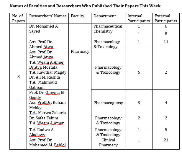 Weekly Scientific Publication Report of the Egyptian Russian University – No. 166