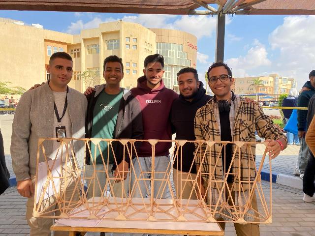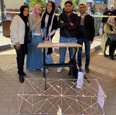 The Dean of the Faculty of Engineering confirmed that the organizing committee evaluated the projects according to precise criteria to ensure equal opportunities for all participating teams, focusing on: originality and quality of the idea, accuracy of engineering execution, model efficiency in bearing loads, teamwork skills, and adherence to the timeline. He noted that the competition resulted in outstanding student models demonstrating high competence in dealing with engineering challenges and problems.